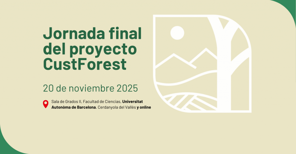 El próximo 20 de noviembre a las 10:00, el proyecto CustForest celebrará su jornada final en la Sala de Grados II de la Facultad de Ciencias de la Universitat Autònoma de Barcelona (Cerdanyola del Vallès), con la posibilidad de seguirla también online. La sesión reunirá a profesionales, entidades, administraciones y ciudadanía interesada en cómo aplicar una gestión forestal multifuncional que promueva la bioeconomía rural y la conservación de la biodiversidad.
